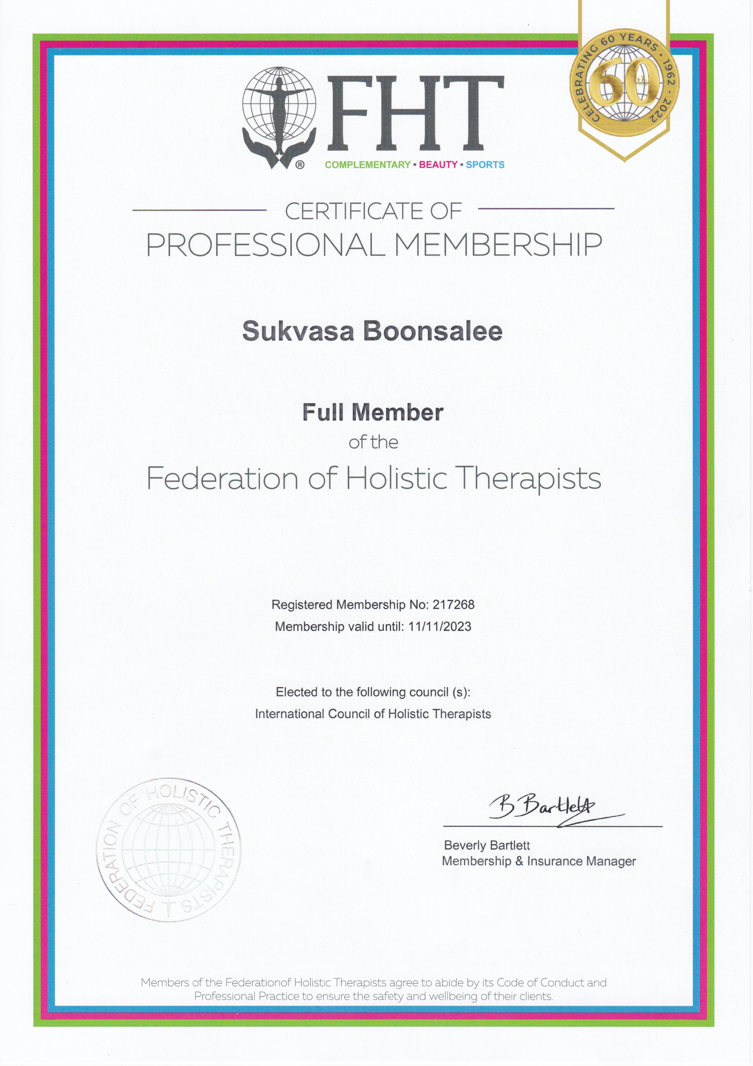 My journey into the art of healing began in 2019 at the historic Wat Po in Bangkok, the birthplace of traditional Thai massage. Since moving to London, I have continued to broaden my knowledge, studying Maternity, Swedish, and Lymphatic Drainage to better support the diverse needs of women here. I hold a VTCT Level 3 qualification and am a proud member of the Federation of Holistic Therapists (FHT).