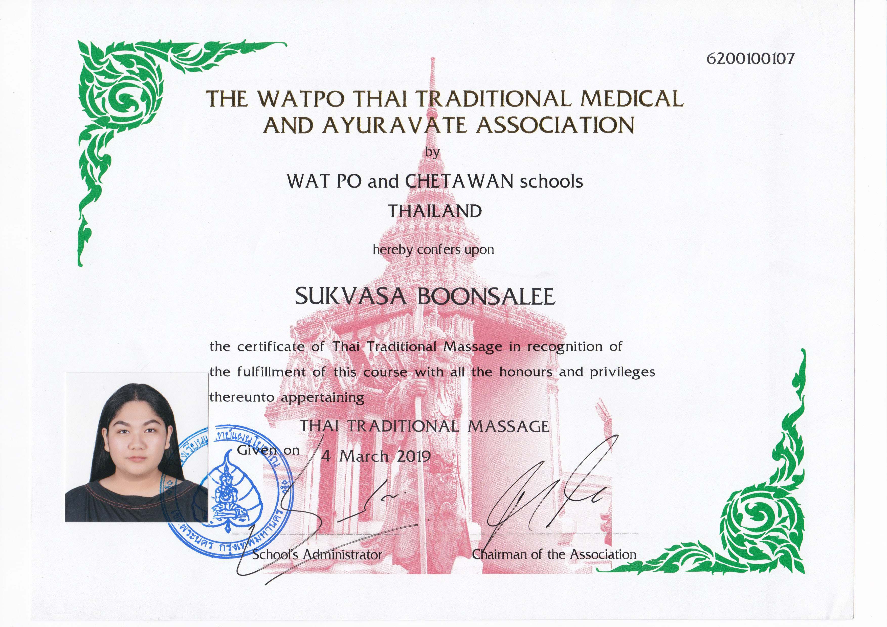 Trained in authentic, traditional Thai massage at the world-renowned Wat Po School, focusing on holistic body balance and muscle relief.